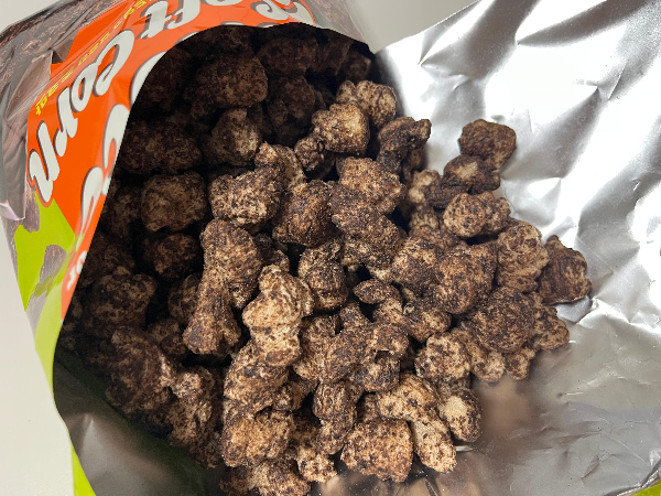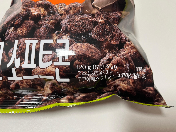 초코 소프트콘 봉지를 뜯어보았습니다. 팝콘을 흙바닥에 떨어트려서 굴려진 마냥 초코가루가 막 묻어있었습니다.
