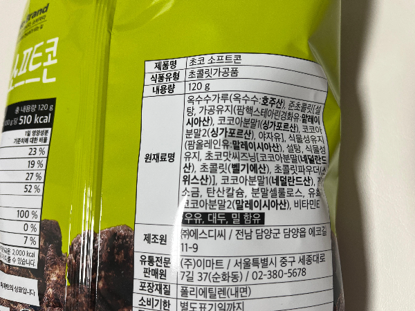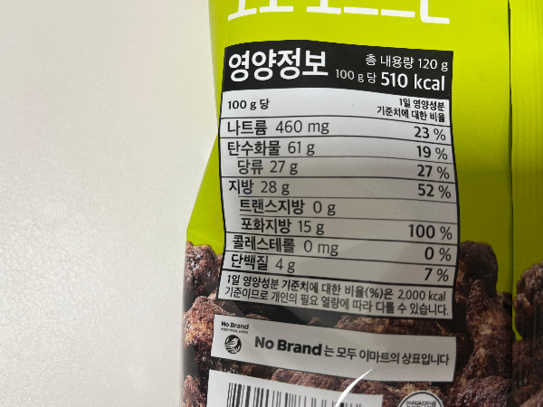 초코과자이기 때문에 영양정보도 한번 확인해 보았습니다.