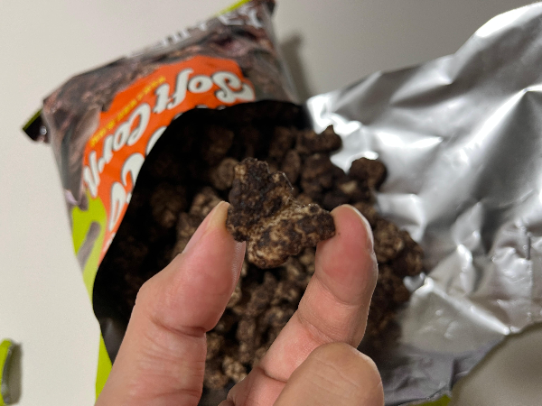 생각보다 가루도 많이 떨어지지 않고 적당히 잘 붙어있어서 깔끔하고 맛있게 먹을 수 있었습니다. 초코를 먹다보면 질려서 다 못 먹을 수 있는데요. 초코 소프트콘은 질리지 않고 한봉지를 원샷에 다 먹을 수 있을 정도로 자극적이지도 않고 부담스럽지 않게 잘 먹을 수 있는 과자인 것 같습니다. 초코의 진한 맛을 선호하는 분에게는 조금 아쉬울 수 있겠지만 저는 밸런스가 좋아서 더 맛있게 느꼈던 것 같네요. 잘 먹었습니다.