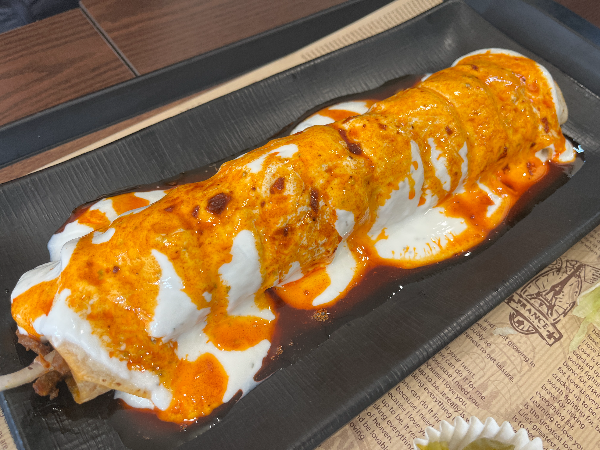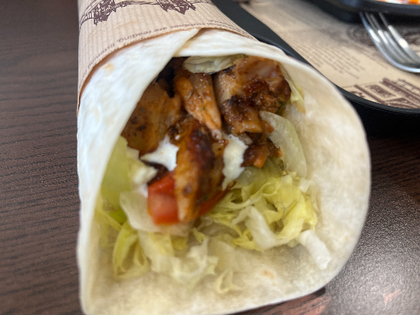 직화로 구워져서 그런건지 닭고기의 질감과 풍미가 너무나 좋았습니다. 특히 양념이 고기와 너무 잘 어우러져서 매콤하면서도 깊은 맛을 느낄 수 있었습니다. 신선한 채소와 소스들도 맛있어서 케밥의 맛을 한층 더 풍부하게 만들어주는 것 같았습니다. 다만 손에 쥐고 먹다보니 아래쪽으로 소스와 각종 국물이 내려오면서 잡고 있던 종이가 축축해지고 찢어지는 일이 발생하여 깔끔하게 먹기가 좀 힘든 부분이 있었습니다.