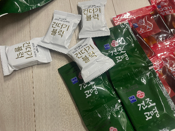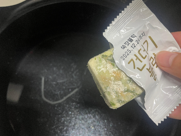 다시 끓는 물에 건더기 블럭을 넣어줍니다.