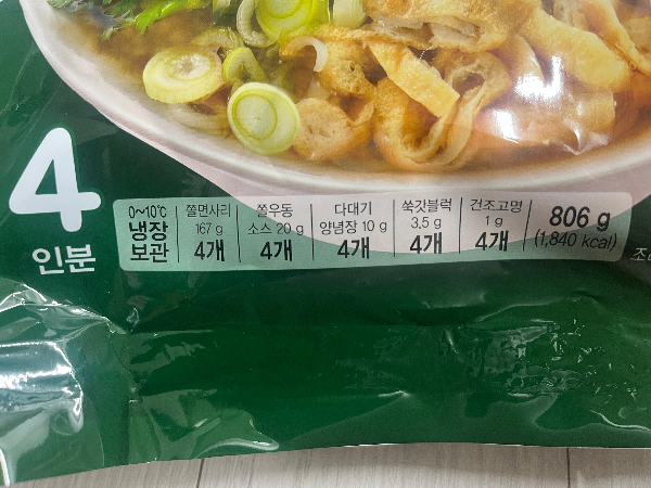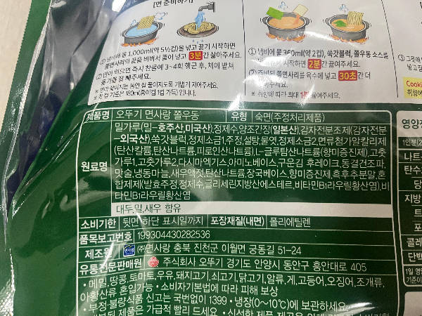 정식 제품명은 오뚜기 면사랑 쫄우동이네요. 면은 숙면으로 주정처리되어 있습니다. 원료명을 보니 밀가루 밀은 호주산과 미국산이고 간장은 일본산 그리고 감자전분은 외국산으로 국산보다는 외국산을 많이 사용하고 있습니다.