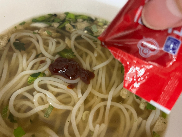 일반 우동과는 조금 밋밋하기도 하고 어색한 느낌이 들어서 얼른 다대기 양념장을 넣어서 먹어보기로 하였습니다.