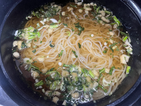 2분 정도 잘 끓여주었으면 준비된 면을 넣고 30초간 더 끓여주면 완성이 됩니다.