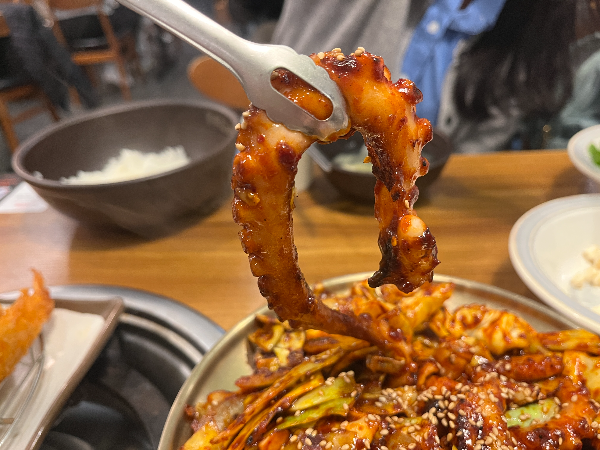 큼지막하게 썰린 양배추와 매콤한 양념이 보기만해도 군침이 돌았습니다. 낙지는 속에 감춰져 있는지 잘 보이지 않았습니다.