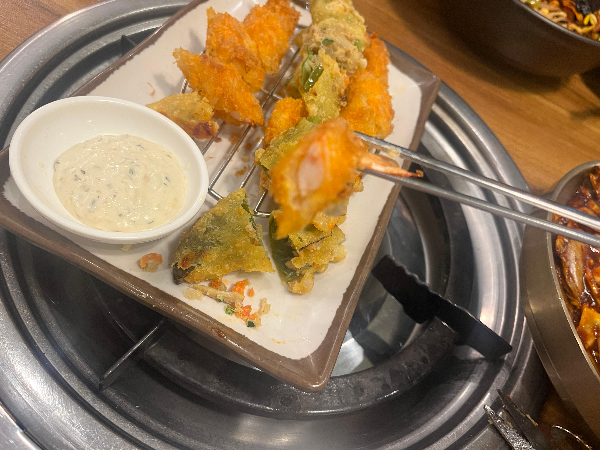 매운맛을 중화시키기 위해서 튀김도 먹어보았습니다. 고추튀김입니다.