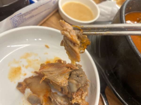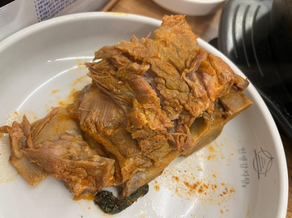 간혹 살이 쉽게 떨어져서 뼈 사이사이 살 빼먹는 맛이 없던 적이 있었는데요. 이곳 인생감자탕의 뼈에는 살이 적당히 잘 붙어 있어서 뜯어먹기도 좋고 쫄깃한 살의 식감도 살아있어서 좋았습니다.