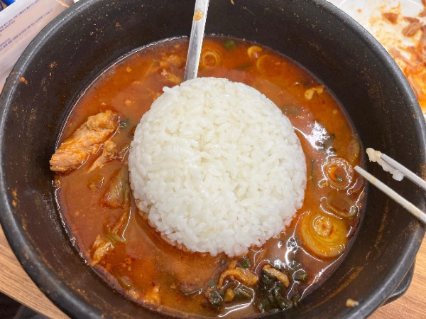 우거지와 함께 먹으면 정말 든든하게 먹는 한끼식사인 것 같습니다. 국물이 얼큰하지만 제 입맛에도 많이 맵지 않아서 맛있게 먹을 수 있었습니다.