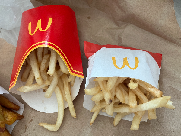사이즈가 다른 프렌치후라이지만 양의 차이는 크게 나지 않는 기분이었습니다.