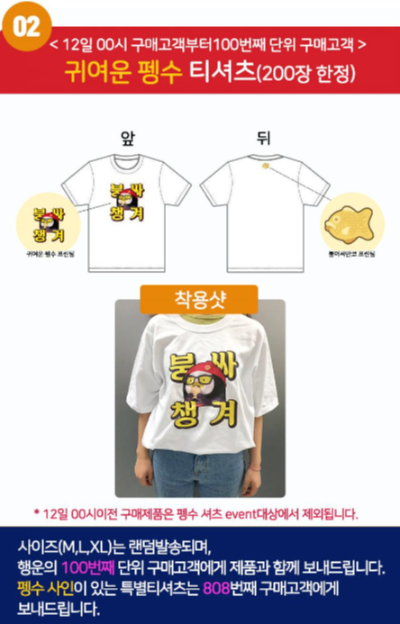 100번째 구매자마다 펭수 티셔츠를 증정합니다. (사이즈 랜덤, 200장 한정)