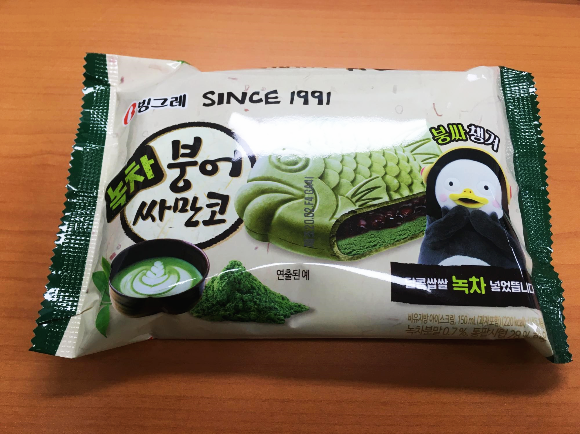 통팥 시럽의 달콤한 맛과 쌉싸름한 녹차의 깊은 풍미가 느껴지는 녹차붕어싸만코였습니다. 녹차 맛 아이스크림을 좋아하시는 분이면 만족하실 것 같습니다.