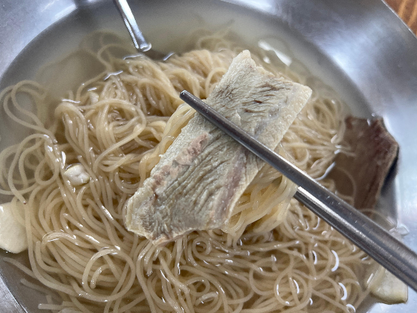 국물부터 맛보았는데요. 짭조름하면서 구수한 맛이 나는게 예전보다 평양냉면 국물에 간이 조금씩 되어 가는 것 같습니다.