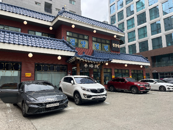 수원 인계동에 있는 평장원입니다. 아내 분이 평양냉면 먹고 싶다고해서 지방 내려가는 길에 점심을 먹으러 방문하게 되었습니다. 청기와로 옛스러운 건물의 모습이 멋있으면서도 오래된 전통이 느껴지는 곳이었습니다. 앞에 넓게 주차장이 되어 있어서 주차도 편하게 하였습니다.