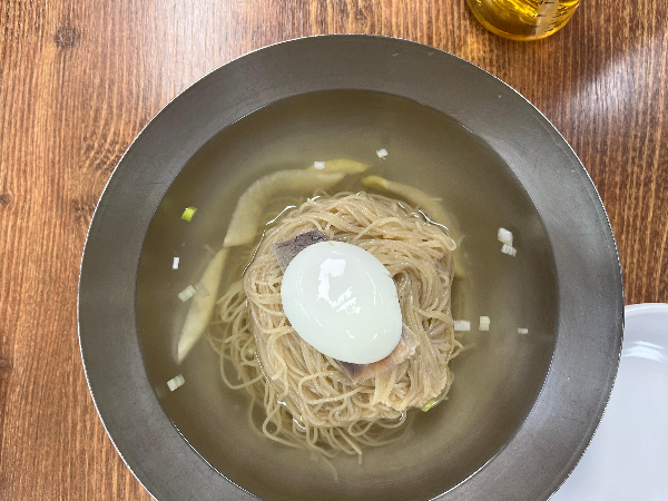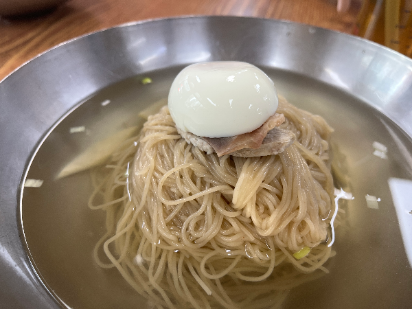 평양냉면 면발은 살짝 가느다란 느낌이면서도 메밀향은 살짝 나고 육수와 면발의 맛으로는 의정부 평양면옥의 평양냉면과 비슷한 느낌이었습니다. 고춧가루만 뿌리면 의정부 평양냉면이라고해도 모를 것 같았는데요.