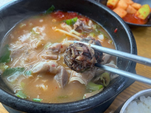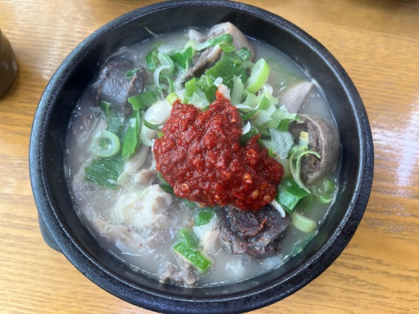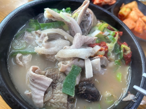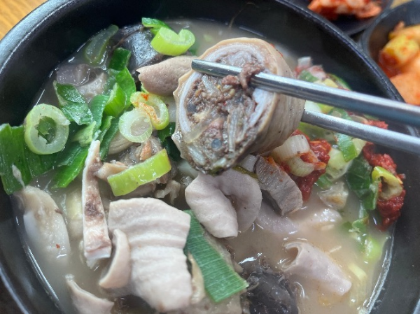 일단 양념장은 한쪽으로 몰아놓고 국밥 안에 들어있는 부속고기들이 너무나 가득해서 국물이 굉장히 적은 느낌이었습니다. 육수는 요청하면 더 주시니까 걱정하지 않고 맛있게 먹었습니다. 잡냄새 없이 쫄깃한 고기들이 한가득이어서 너무나 좋았습니다.