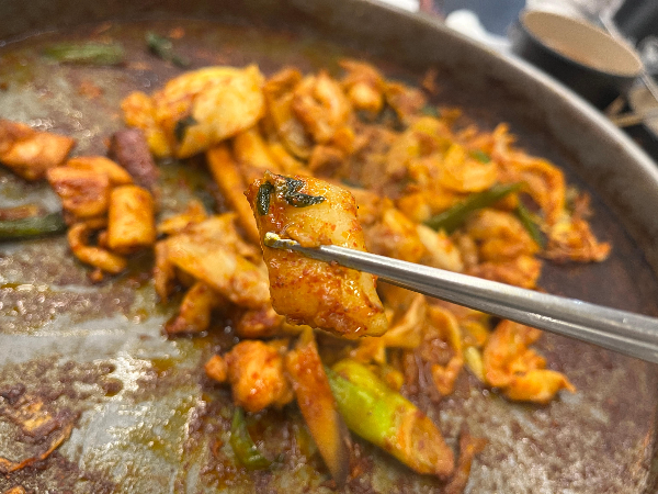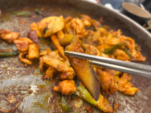고구마도 들어있었습니다. 강원도 춘천 닭갈비라서 감자가 들어있을 거라고 다들 생각하셨겠지만 고구마입니다. 달고 단 고구마가 닭갈비의 단맛을 더 올려주는 것 같았습니다.
