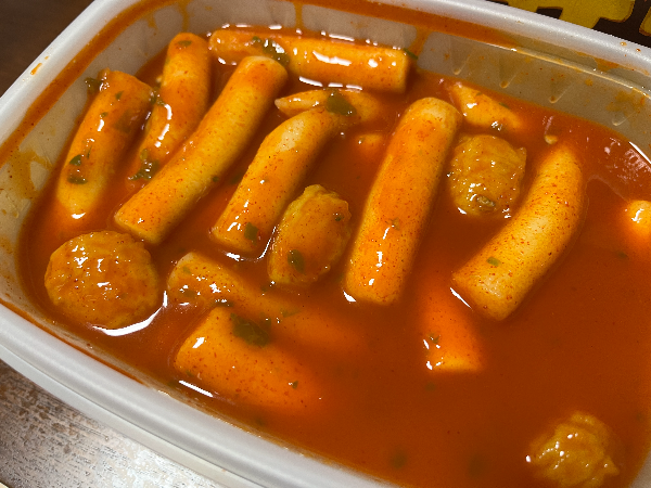 제가 좋아하는 떡볶이 먼저 먹어보았습니다. 양념이 골고루 배어있는 밀떡입니다. 떡볶이는 밀떡이 맛있게 느껴지는데요. 양념도 제가 좋아하는 초등학교 앞 떡볶이 맛이어서 정말 맛있게 느껴졌습니다.