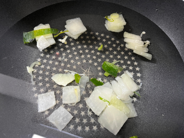 웍에 물 1200ml와 무를 넣고