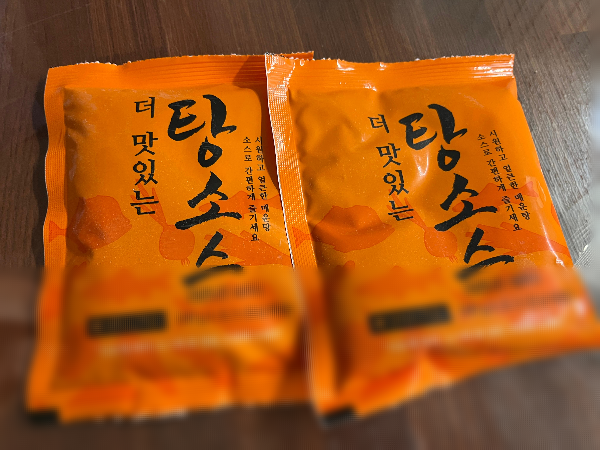탕소스는 두 개가 들어있어서 하나씩 소분해서 두 번 먹을 수 있는 양인 것 같습니다.