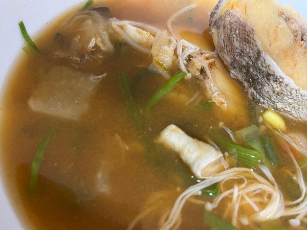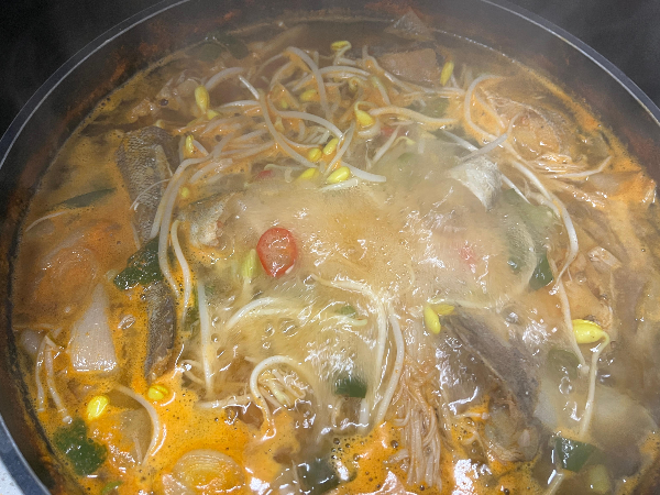 대구살은 끓이면서도 다행히 부서지지 않았는데요. 살이 퍽퍽하지 않고 쫀득하게 맛있었습니다. 크기도 꽤나 커서 와구와구 먹을 수 있을 정도였습니다. 비린 맛도 정말 없고 깔끔했습니다.
