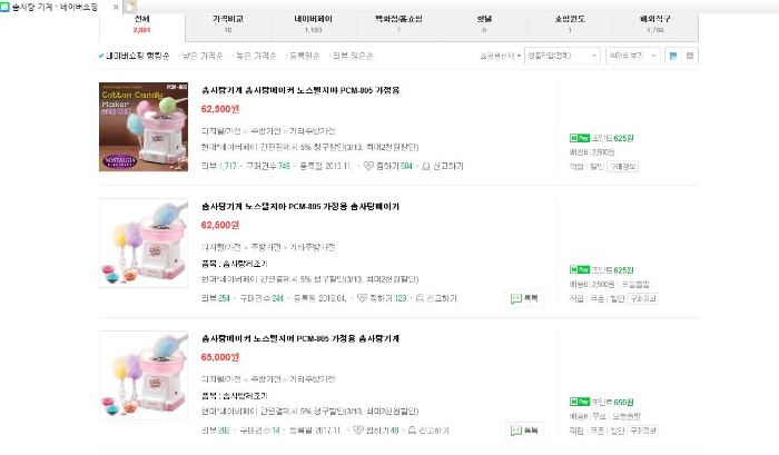 저희 팀에 3명, 자료실 팀에 4명 정도 해서 넉넉하게 10개 정도 준비하려 했습니다. 그래서 솜사탕 기계를 사서 만들어볼까 생각해서 찾아보다가... 그렇게까지... 음.. 할많하않...