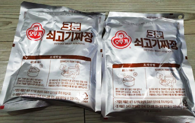 오뚜기 3분 쇠고기짜장입니다. 혼자 사는 1인 가구의 필수 제품입니다. 가격은 950원으로 중량은 200g 1인분입니다.
