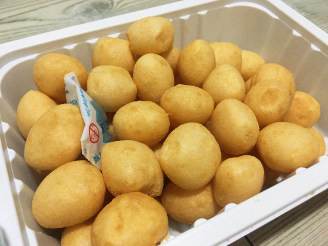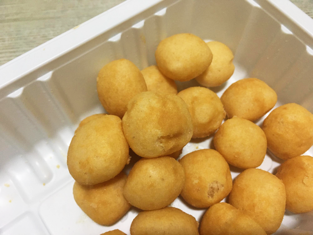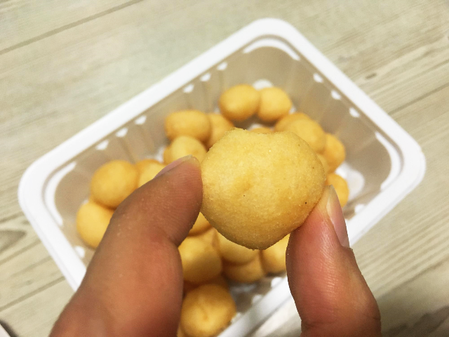 뜯어보았습니다. 노르스름하니 맛있게 생겼습니다. 홈런볼과 비슷한 느낌입니다. 뜯었을 때 콩가루의 고소한 냄새가 풍길 줄 알았는데 그렇지는 않았습니다.