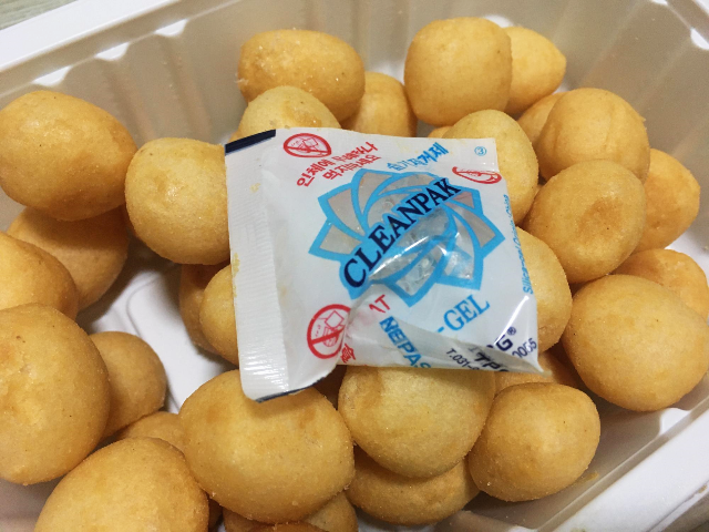솜절미 과자 사이에 별사탕이 들어있을 것 같이 생긴... 습기제거제가 들어있습니다. 과자 안에 습기제거제는 생소했습니다. 과자는 아이들이 즐겨먹기 때문에 습기제거제를 먹지 않도록 꼭 유의해야 할 것 같습니다.